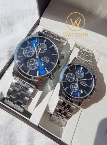 ساعت ست زنانه و مردانه الگانس فلزی طرح سه موتوره