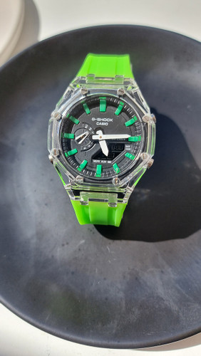 ساعت مچی اسپرت جی شاک دو زمانه مناسب خانم ها و آقایان بند رابر سبز قاب شیشه ای