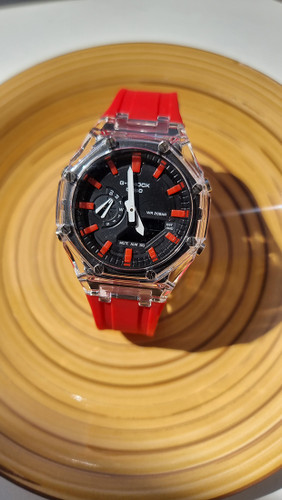 ساعت مچی اسپرت جی شاک دو زمانه مناسب خانم ها و آقایان بند رابر قرمز قاب شیشه ای