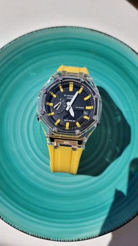 ساعت مچی اسپرت جی شاک دو زمانه مناسب خانم ها و آقایان بند رابر زرد قاب شیشه ای