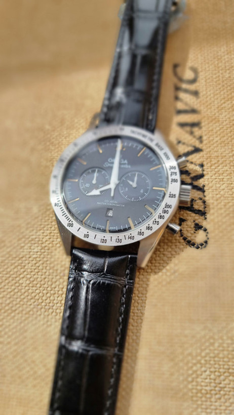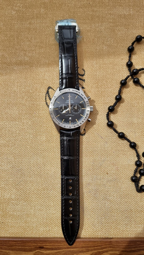 ساعت مچی مردانه امگا اسپیدمستر – بند چرمی مشکی، صفحه مشکی، کرنوگراف، موتور ژاپن
