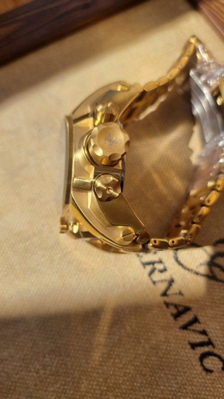 در این ساعت یک قاب درشت با ضخامت بالا رو داریم که همراه با متریال استیلِ تو پُر، قطعاً وزن ساعت رو بالا خواهد برد. میشه گفت اینویکتا یکی ضخیم ترین قاب ها رو بین ساعت های موجود در دنیا داراست.