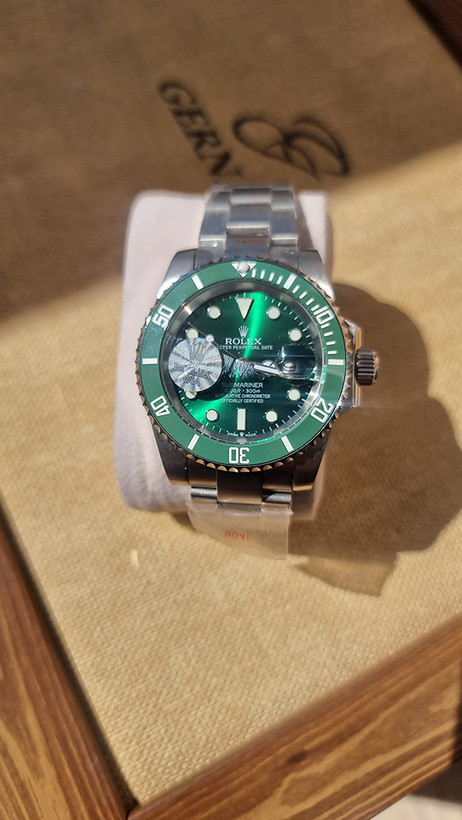 ساعت ساب مارینر رولکس تمام استیل با صفحه سبز رنگ که در گالری وات شن عرضه می شود دارای بدنه فول استیل خالص است، همچنین موتور آن که کاملاً مشابه نمونه اصلی است ساخت ژاپن و با کیفیت بالاست.ایندکس ها و عقربه ها شب نما هستن و صفحه ساعت چرخشی می باشد.