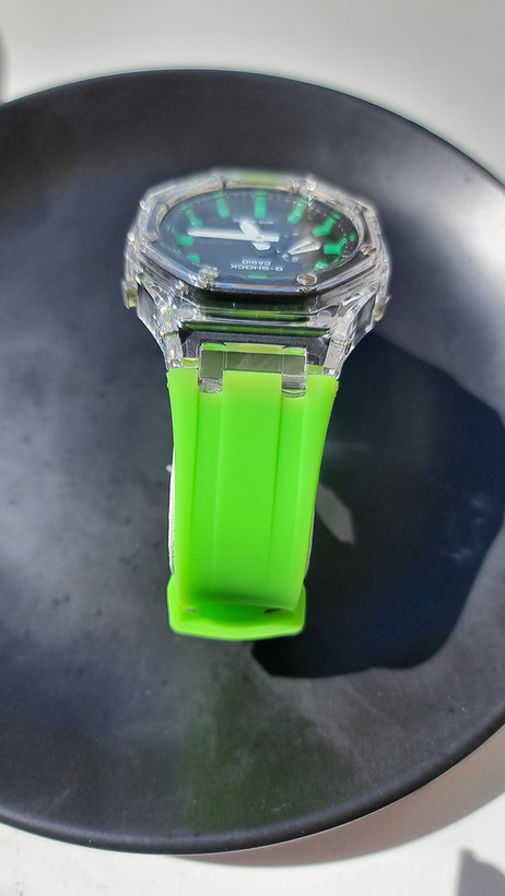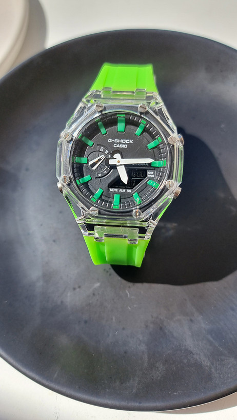 ساعت مچی اسپرت جی شاک دو زمانه مناسب خانم ها و آقایان بند رابر سبز قاب شیشه ای