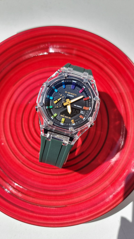 ساعت مچی اسپرت جی شاک دو زمانه مناسب خانم ها و آقایان بند رابر سبز تیره قاب شیشه ای