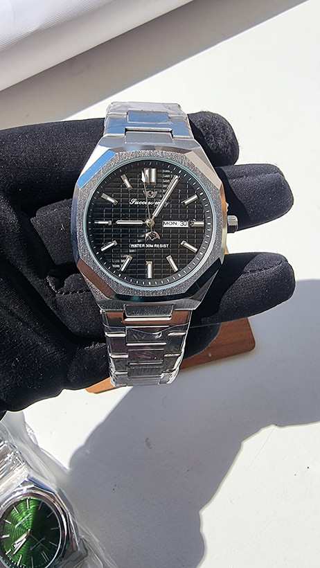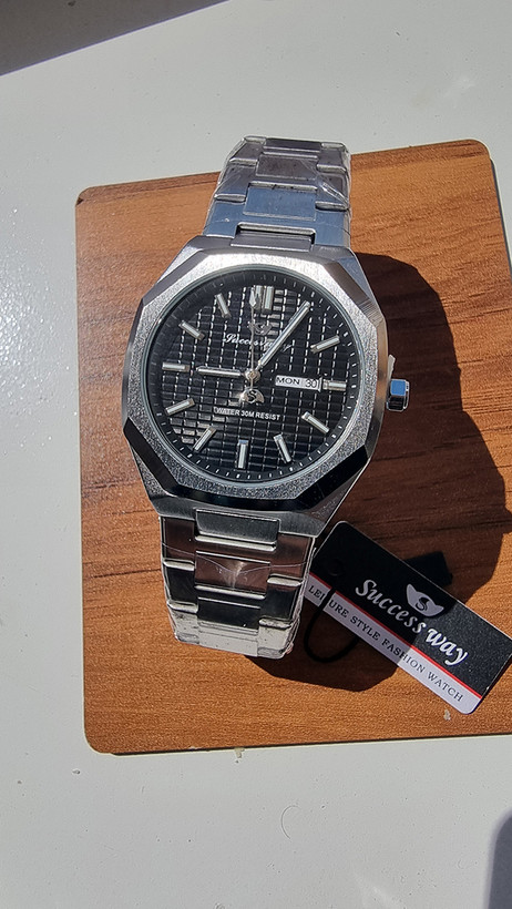 ساعت مچی مردانه ساکسس وی شرکتی نقره ای صفحه مشکی تک موتوره تقویم دار با کیفیت خوب طراحی شیک