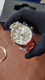 ست ساعت مچی مردانه برند اورینتال کرنوگراف فلزی دو رنگ طلایی نقره ای رنگ صفحه سیلور به همراه دستبند استیل طلایی