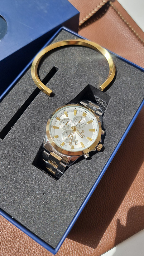 این ساعت به همراه یک دستبند بنگل مردانه میباشد که میتواندیک هدیه ی خاص وشیک باشد.