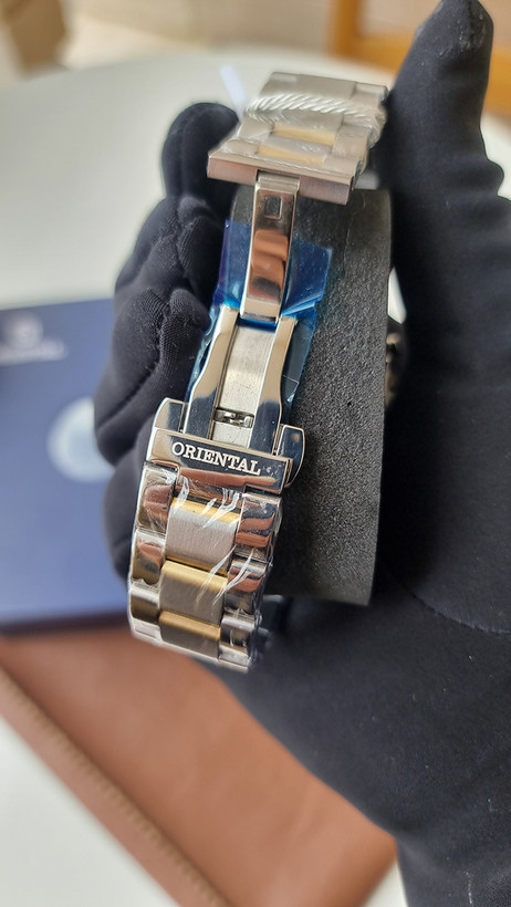 گالری ژینوس واقع در استان خوزستان،با ۲۵ سال سابقه ی فروش ساعت نمایندگی رسمی برند های مختلف از جمله اورینتال می باشد. برند اورینتال، اورجینال می باشد ،موتور ساعت ژاپنی با کیفیت درجه یک است،بند و قاب ساعت از جنس استیل میباشد که با پوست بدن سازگار است . ساعت اورینتال مردانه ، ساعتی بسیار زیبا ، از نوع کرنوگراف بوده و جنس بند آن، فلزی می باشد. رنگ دور قاب این محصولطلایی رنگ بند آن استیل دو رنگ طلایی نقره ای و رنگ صفحه آن سیلور بوده و استایلی زیبا برای شما فراهم می کند.
