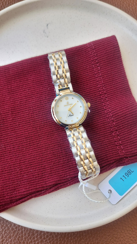 ساعت مچی زنانه برند دنیل سزار فلزی دو رنگ طلایی نقره ای صفحه سفید