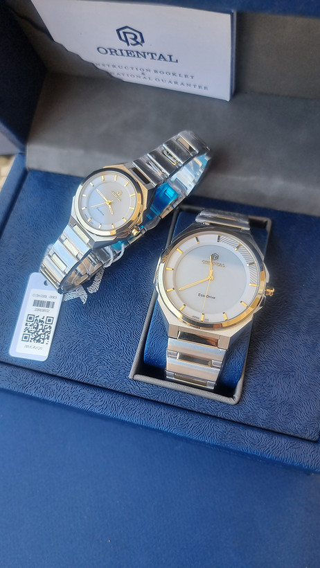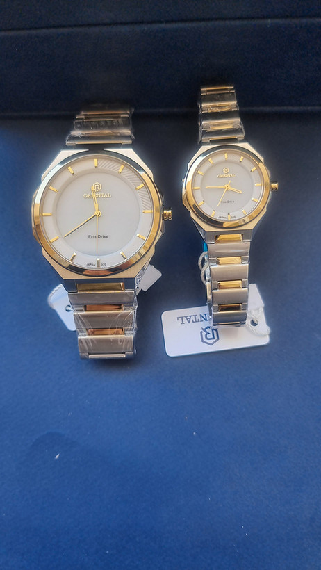 ساعت ست مچی اکودرایو (خورشیدی) برند اورینتال فلزی دو رنگ نقره ای طلایی رنگ صفحه سیلور