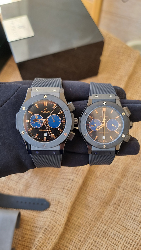 ست ساعت کرنوگراف هابلوت با ترکیب جذاب مشکی و رزگلد، انتخابی بینظیر برای زوجهایی است که بهدنبال استایلی خاص، هماهنگ و لاکچری هستند. طراحی اسپرتـمدرن، کیفیت بالا و ظاهر چشمنواز این ست، آن را به یک هدیه متفاوت و ماندگار تبدیل کرده است.