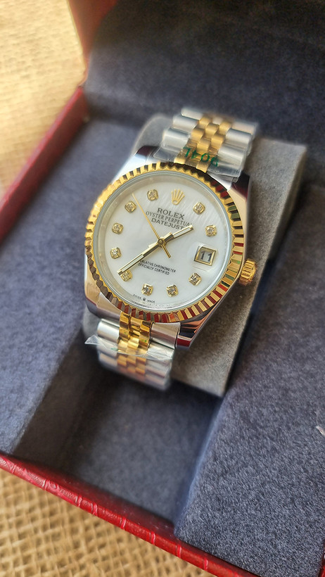 ساعت مچی مردانه رولکس دیت جاست بند دو رنگ طلایی نقره ای صفحه سفید Date just 40mm سایز بزرگ