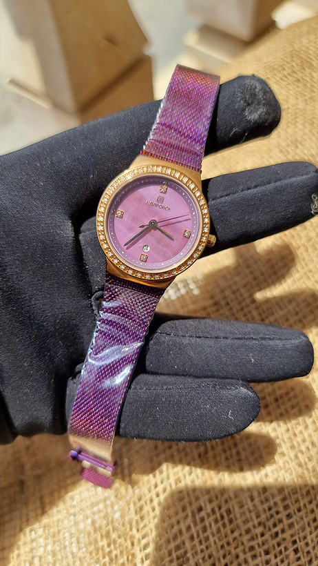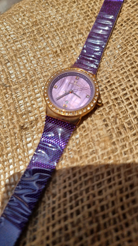 این مدل با بند حصیری بنفش و صفحه ی بنفش یک مدل خاص و شیک برای خانم های علاقمند به ساعت میباشد .بند ساعت به راحتی قابل سایز است و سایز صفحه ساعت متوسط میباشد ، مناسب استفاده روزمره و مجلسی میباشد و میتواند یک هدیه خاص برای خانم ها و همچنین دختران جوان باشد.