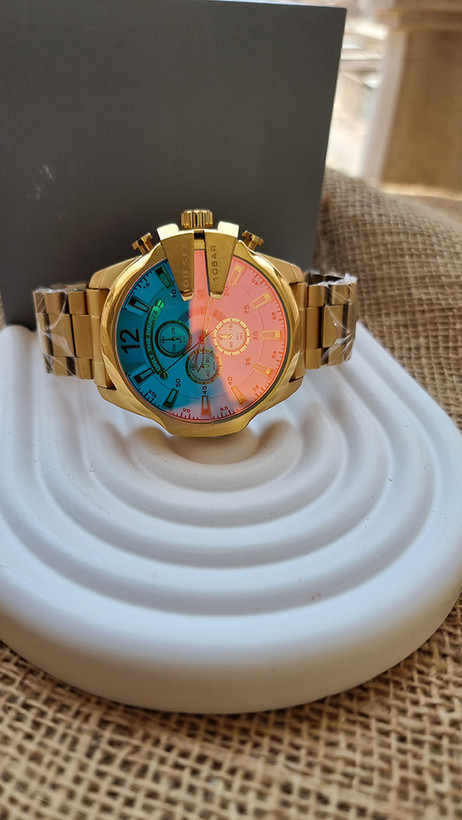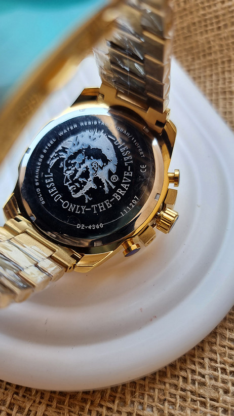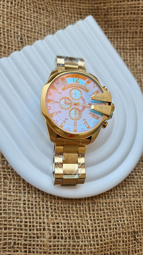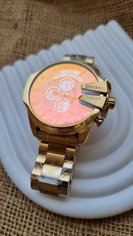 ساعت مچی مردانه دیزل شاخدار فلزی مدل DZ-4360 کرنوگراف طلایی شیشه هولوگرامی