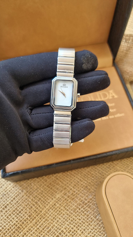 ساعت مچی زنانه برند سلیدا(سولیدا) اورجینال نقره ای چهارگوش صفحه صدفی مدل 6126