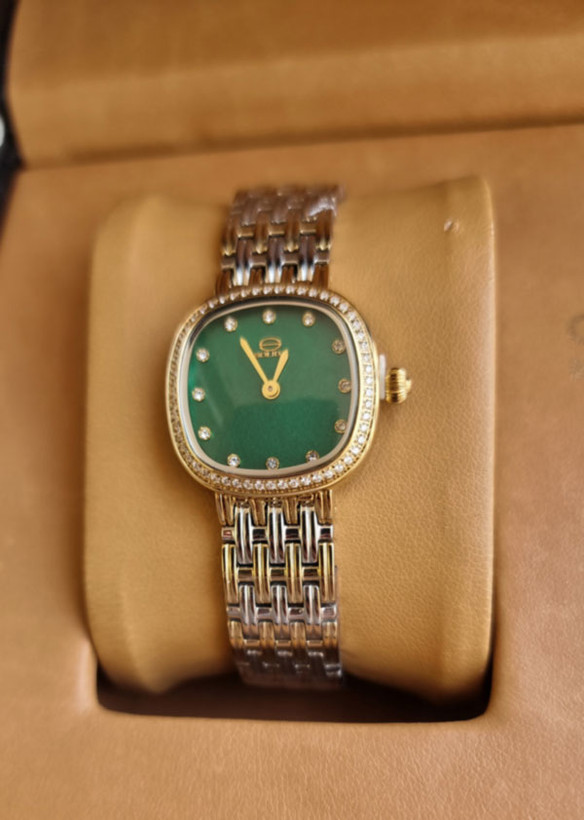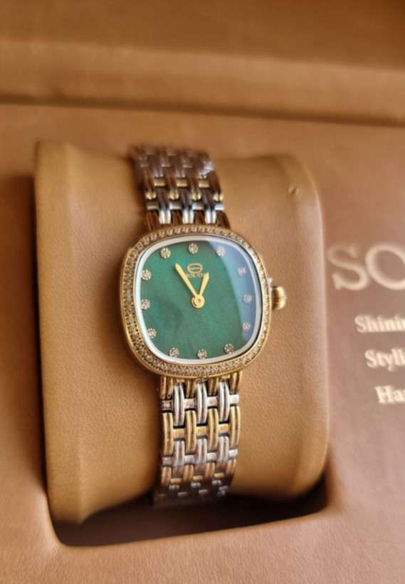 ساعت مچی زنانه سلیدا(سولیدا) اورجینال دو رنگ صفحه مربع سبز مدل 4135