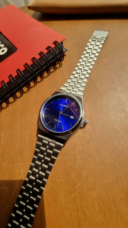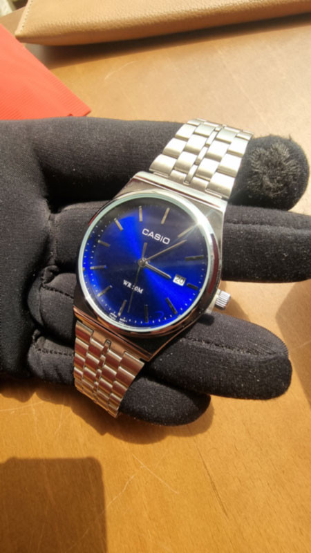 ساعت مچی کاسیو دایرهای کلاسیک با صفحهی آبی شیک و بند فلزی استیل نقرهای، انتخابی ایدهآل برای افرادی است که به دنبال ظاهری ساده، زیبا و در عین حال جذاب هستند. طراحی کلاسیک این مدل در کنار رنگ خاص صفحه، ترکیبی بینظیر از اصالت و استایل روزمره را به همراه دارد.