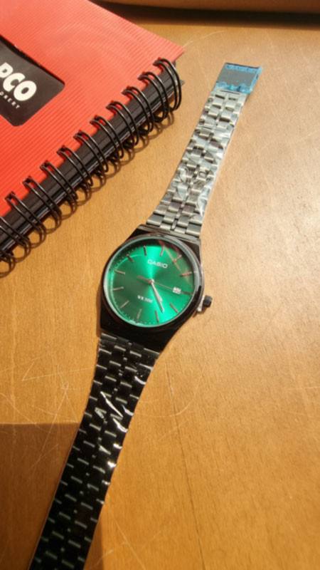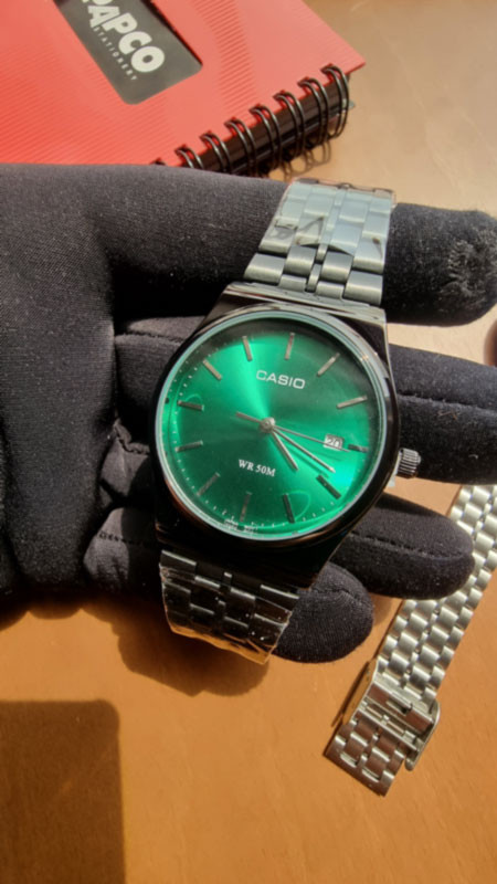 ساعت مچی کاسیو دایرهای کلاسیک با صفحهی سبز شیک و بند فلزی استیل مشکی، انتخابی ایدهآل برای افرادی است که به دنبال ظاهری ساده، زیبا و در عین حال جذاب هستند. طراحی کلاسیک این مدل در کنار رنگ خاص صفحه، ترکیبی بینظیر از اصالت و استایل روزمره را به همراه دارد.