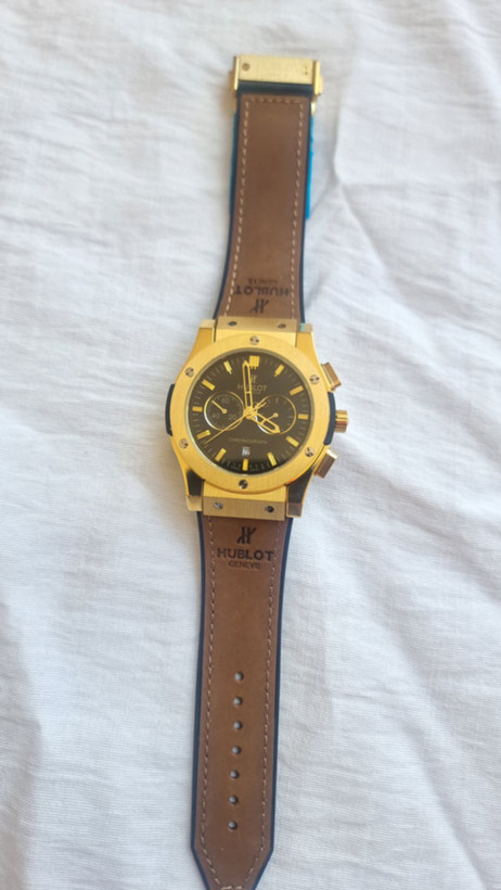 ساعت مچی مردانه هابلو(هابلوت) کرنوگراف کلاسیک بند خردلی قاب طلایی صفحه مشکی