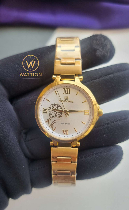 ساعت مچی زنانه NAVIFORCE فلزی طلایی با صفحه سفید با طرح گل، ترکیبی از طراحی لوکس و کیفیت بالا است. این ساعت زنانه با موتور کوارتز ژاپنی دقیق، بدنه فلزی مقاوم و شیشه ضدخش، گزینهای ایدهآل برای استفاده روزمره و استایل رسمی محسوب میشود. اگر به دنبال خرید ساعت زنانه شیک، بادوام و خاص با قیمت مناسب هستید، ساعت NAVIFORCE رزگلد انتخابی جذاب و ارزشمند است.