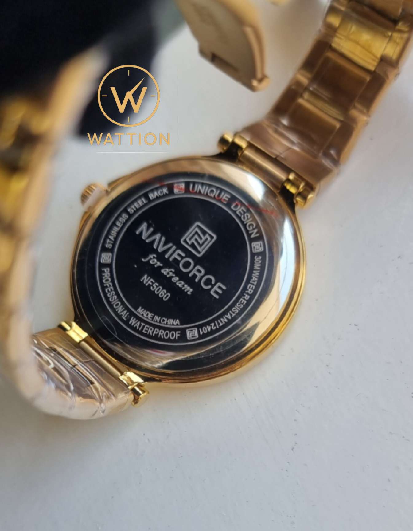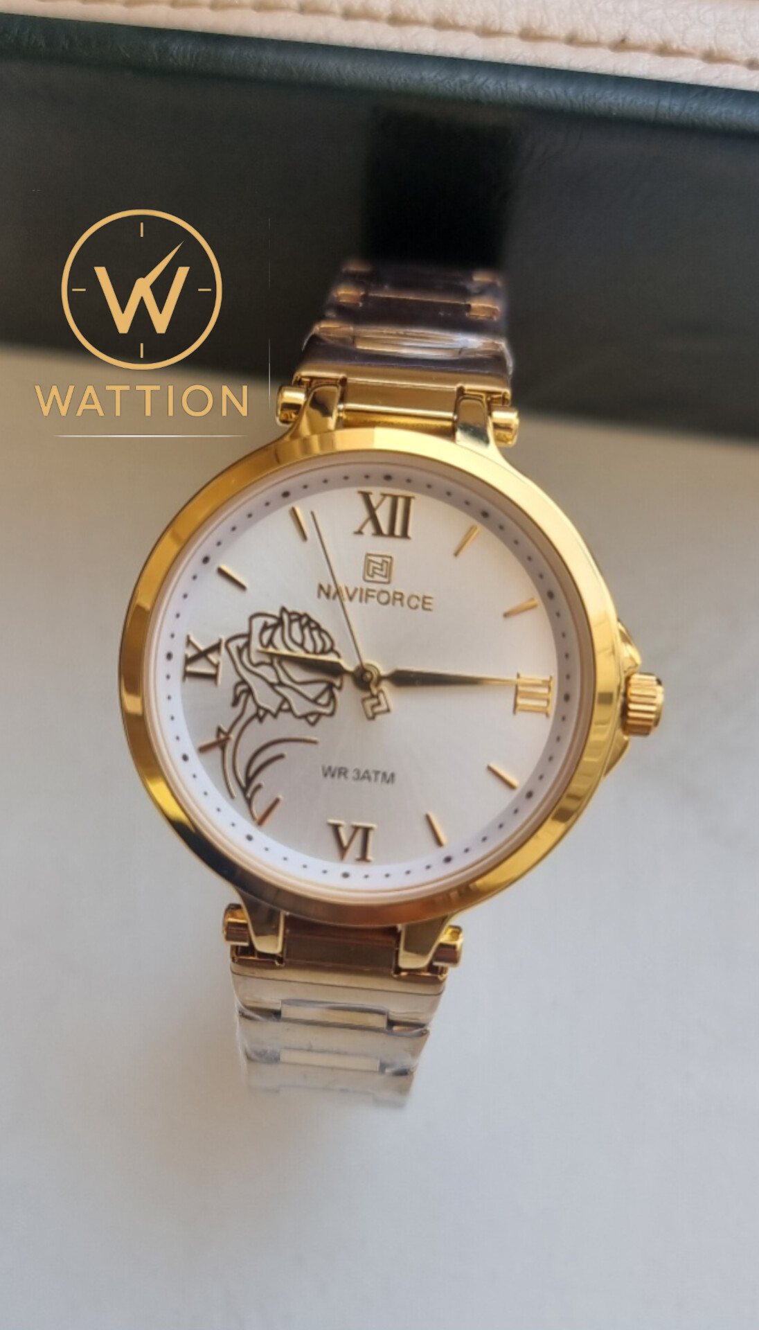 ساعت مچی زنانه NAVIFORCE فلزی طلایی با صفحه سفید با طرح گل، ترکیبی از طراحی لوکس و کیفیت بالا است. این ساعت زنانه با موتور کوارتز ژاپنی دقیق، بدنه فلزی مقاوم و شیشه ضدخش، گزینهای ایدهآل برای استفاده روزمره و استایل رسمی محسوب میشود. اگر به دنبال خرید ساعت زنانه شیک، بادوام و خاص با قیمت مناسب هستید، ساعت NAVIFORCE رزگلد انتخابی جذاب و ارزشمند است.
